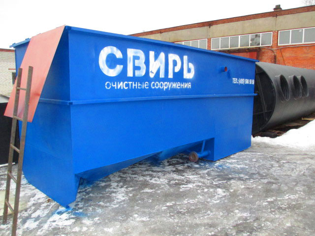 Установка «СВИРЬ» состоит из автоматизированной насосной станции и блока очистки, который включает пескоулавливающий бункер, отстойник с нисходяще-восходящим потоком, тонкослойный отстойник и фильтр с плавающей загрузкой с механизированной промывкой .